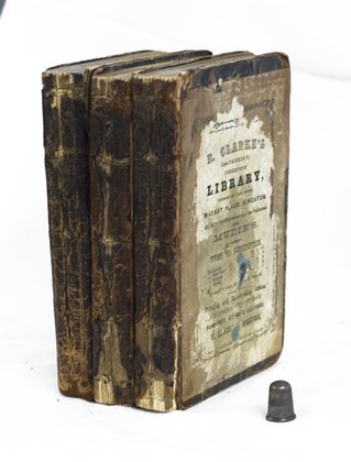 Binding: Brown, quarter calf. Front and back covers marbled board ; each volume with a library plate v. I 'R. CLARKE'S | (Late FRICKER'S) | SUBSCRIPTION | LIBRARY'. v. II 'R. CLARKE'S | SUBSCRIPTION | LIBRARY'. v. III 'H.I. FRICKER'S | CIRCULATING | LIBRARY'. SPINE: all three broken, cracked, unreadable.