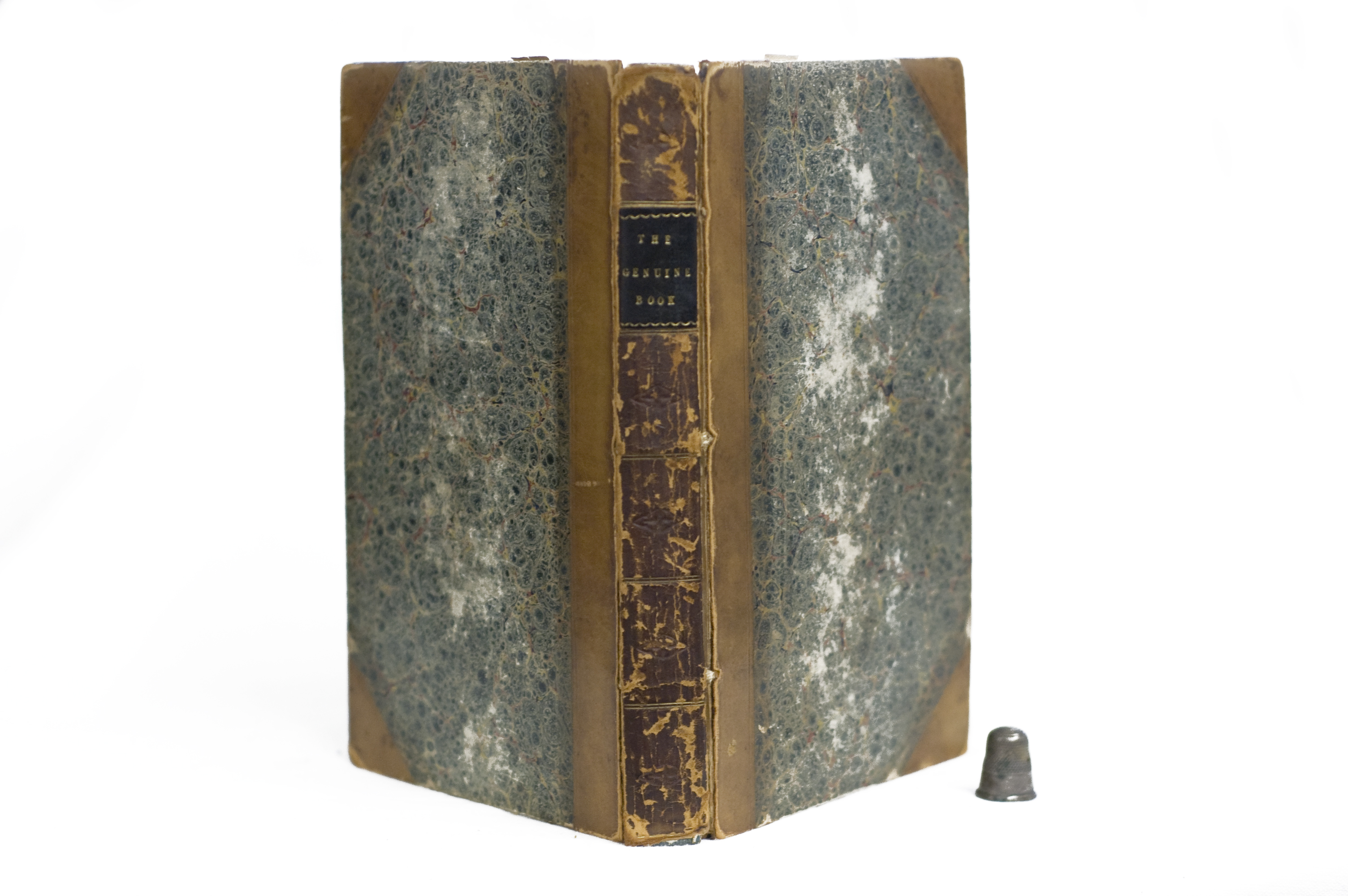 Binding: Half calf. Front and back covers marbled board. SPINE: [blind/gilt-tooled] 'The Genuine Book'.