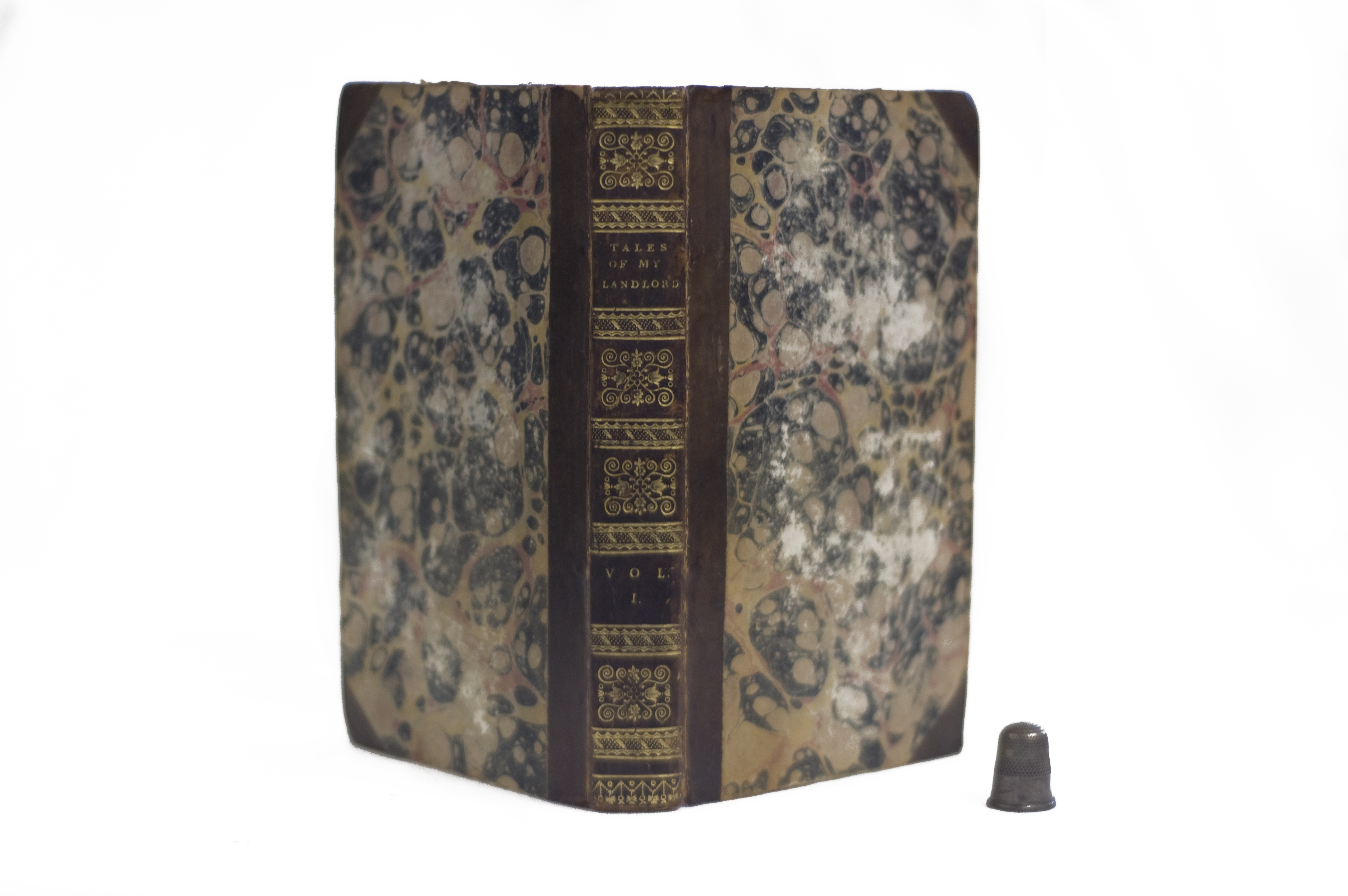 Binding: Brown, half calf. Front and back covers marbled board. SPINE: [gilt-tooled] '(decorative device) | TALES | OF MY | LANDLORD | (decorative device) | (decorative device) | VOL. | I. | (decorative device)'.