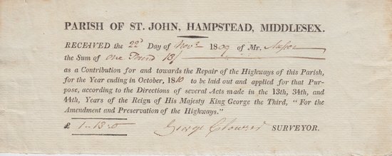 A collection of 12 receipts all for the parish of Hampstead, Middlesex.