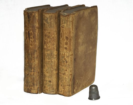 Binding: Brown, full calf. Front and back covers gilt-tooled two-line border. SPINE: [gilt-tooled] '(emblem in box) | (lettering worn-out) | (emblem in box) | (emblem in box) | (emblem in box) | (lines)'.