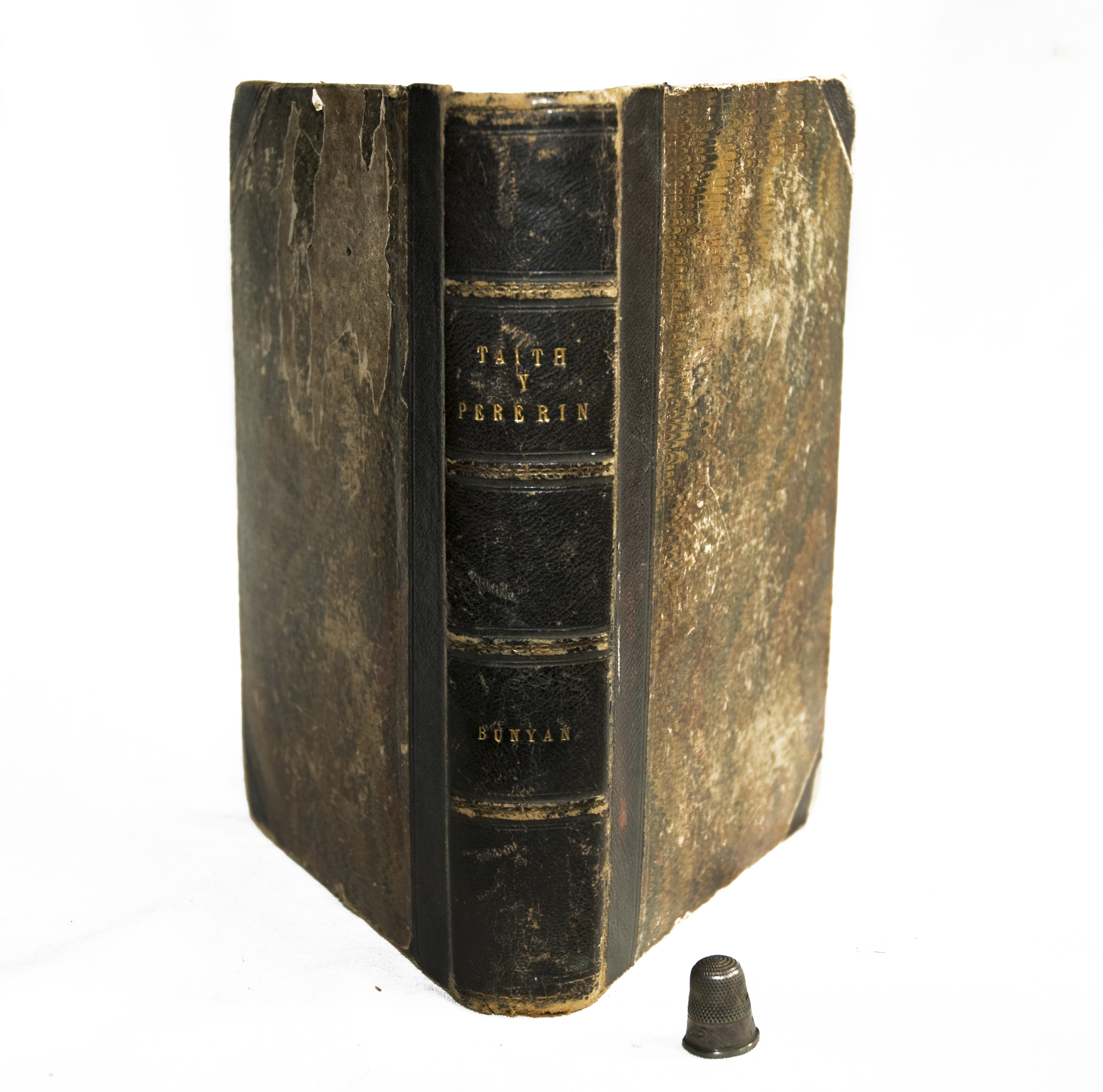Binding: Brown, half calf. Front and back covers marbled board. SPINE: [gilt/blind-tooled] '(lines) | (lines) | TAITH | Y | PERERIN | (lines) | (lines) | BUNYAN | (lines) | (lines)'.