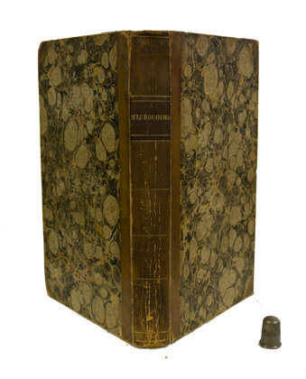 Binding: Brown, half calf. Front and back covers marbled board. SPINE: [gilt-tooled] '(line) | (line) | 'dotted line) | MICROCOSM &c | (dotted line)' (on dark brown calf) | (line) | (line) | (line) | (line) | (line) | (line)'.