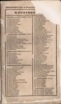 Advertisements: 'HODGSON'S List of Pamphlets (torn page)' [front cover]