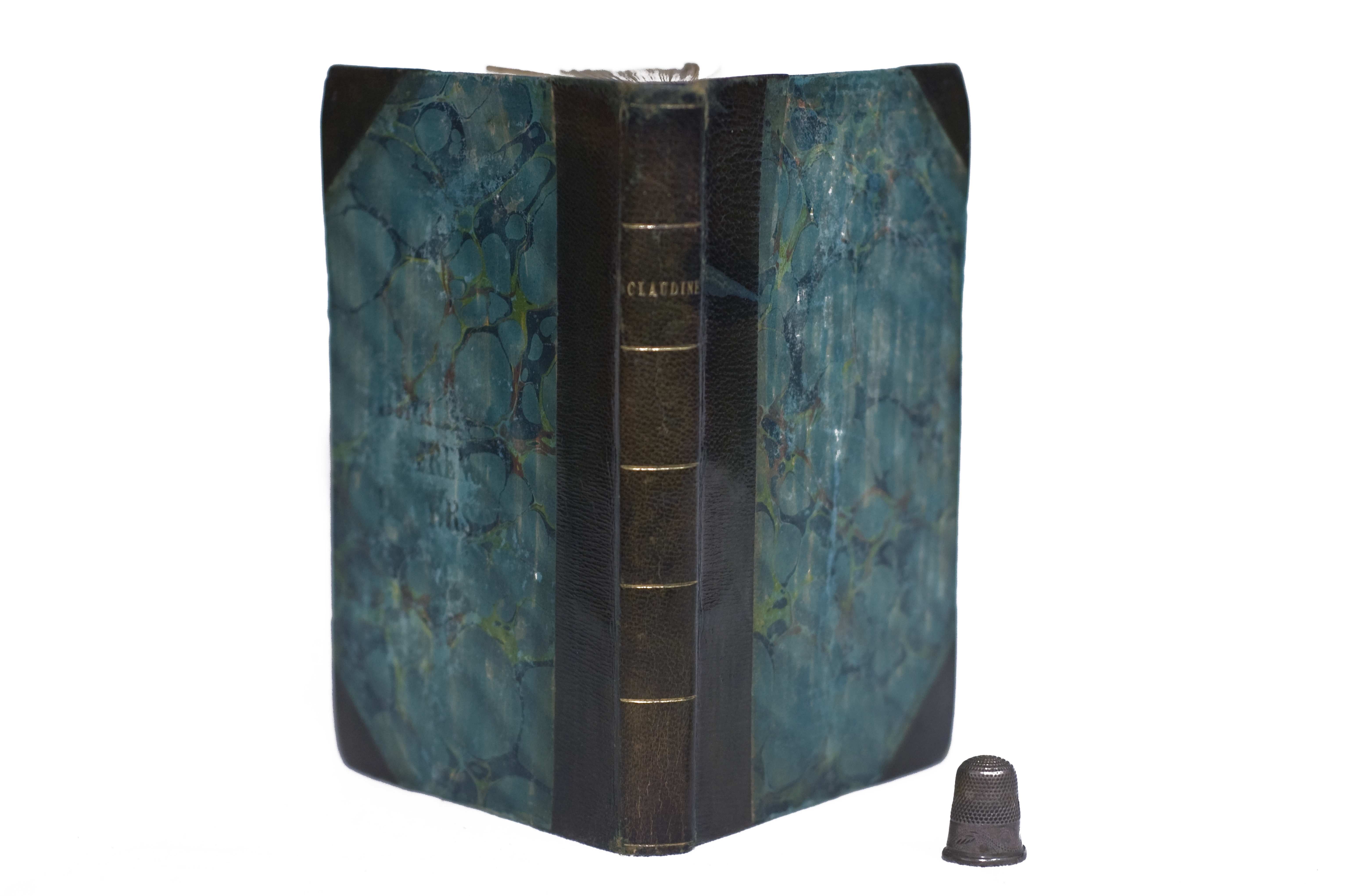 Binding: Green, half calf. Front and back marbled board. SPINE: [gilt-tooled] '(line) | (line) | CLAUDINE | (line) | (line) | (line) | (line) | (line)'.