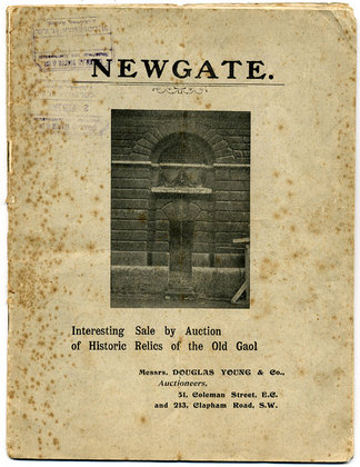 Notes:Admittance to the auction was gained by posession of the catalogue itself, plus 1s. The auction was at the Old Press Yard in London. Most of the items were fittings and hardware in the prison. The first page of the booklet gives information on why the auction is being held a bit of history on Newgate as a prison.