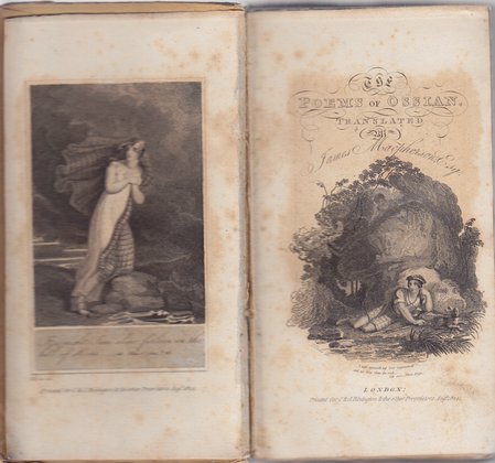 The Poems of Ossian (1825) is a single-volume book of poetry, including ‘Preliminary Discourse’, ‘A Dissertation Concerning the Area of Ossian’, ‘A Dissertation Concerning the Poems of Ossian’, and ‘A Critical Dissertation on the Poems of Ossian, the Son of Fingal.’ With such extensive additional content this 455-page tome is far from light reading. It is an expensive version of a popular text, one of many ‘British Classics’ advertised at the back cover, including Paul & Virginia for three shillings and Robinson Crusoe for five shillings. This is a prime example of differentiation at the upper end of the print market; publishers produced works otherwise available for a fraction of the cost but designed for upmarket readers with ample resources or leisure, and likely a library. The distinction manufactured from one penny to sixpence continues and is in some ways magnified as publishers go to great lengths to attract upmarket readers to older, popular, and new works.