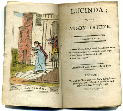 Lucinda, or the Angry Father, for example, is not only in blue covers, but includes a coloured frontispiece, possibly justifying the higher price of twopence. It is also subtitled