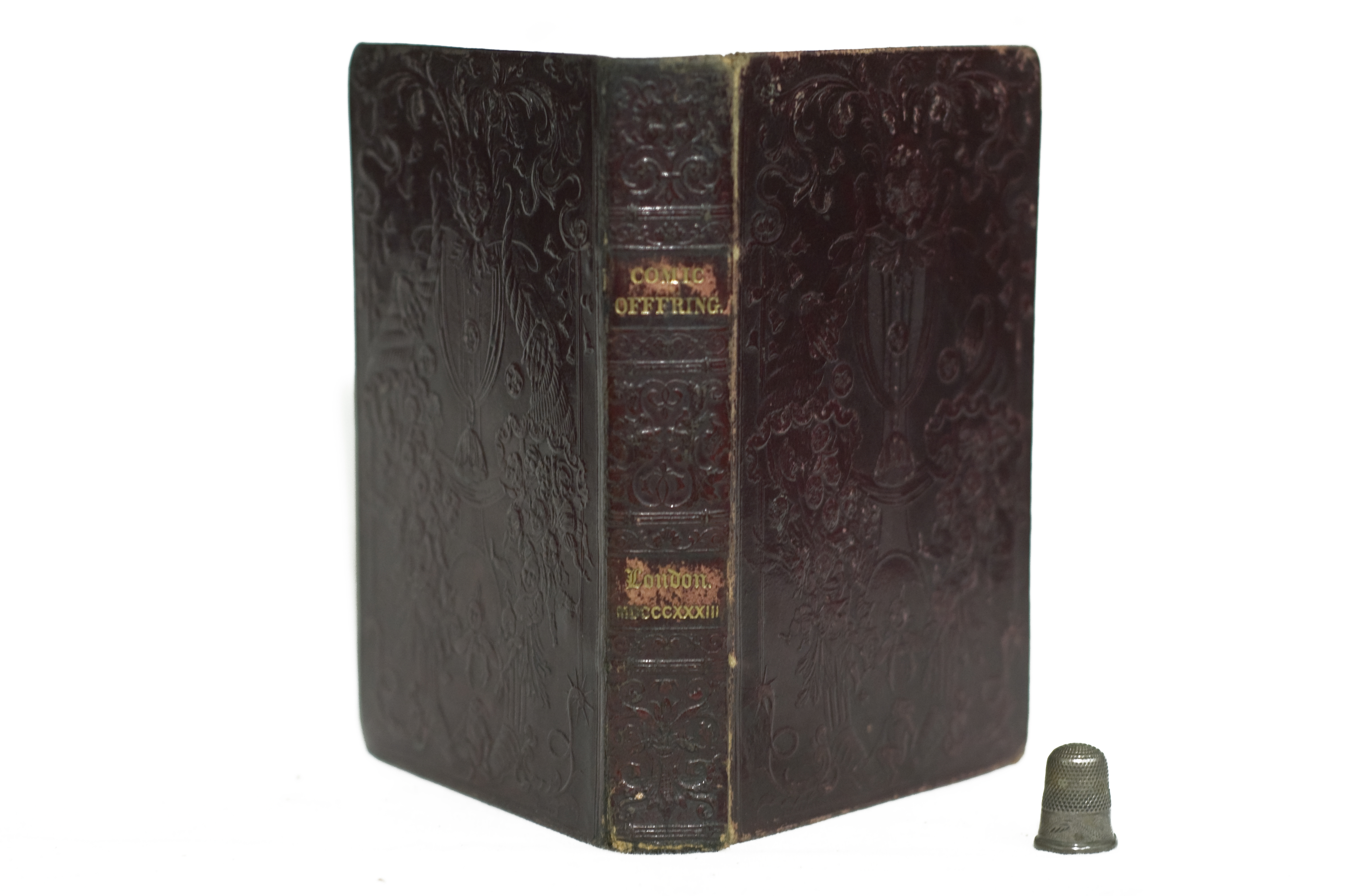 Assuming the same quality of leather and size of book, moving from quarter to half to full calf meant a more expensive binding. Given that many upmarket books were destined for the mantle or the library in an upper middle-class home, it was often unnecessary to go to the added expense of a full leather binding; quarter morocco with gilt lettering, for example, would appear the same as full morocco on the shelf. However, if expense was not an issue or the book would be handled regularly then the cost of full leather might be justified, as with The Comic Offering; or Ladies