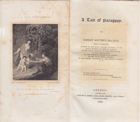 25. In 1825, A Tale of Paraguay was published following several years of intermittent composition. This verse romance was composed of Spenserian stanzas and is based on a Latin narrative composed by Martin Dobrizhoffer, a Jesuit priest in Paraguay. The account was published in English as An Account of the Abipones, an Equestrian People of Paraguay (1822) and translated by Sara Coleridge, wife of Samuel Taylor Coleridge and resident in Southey